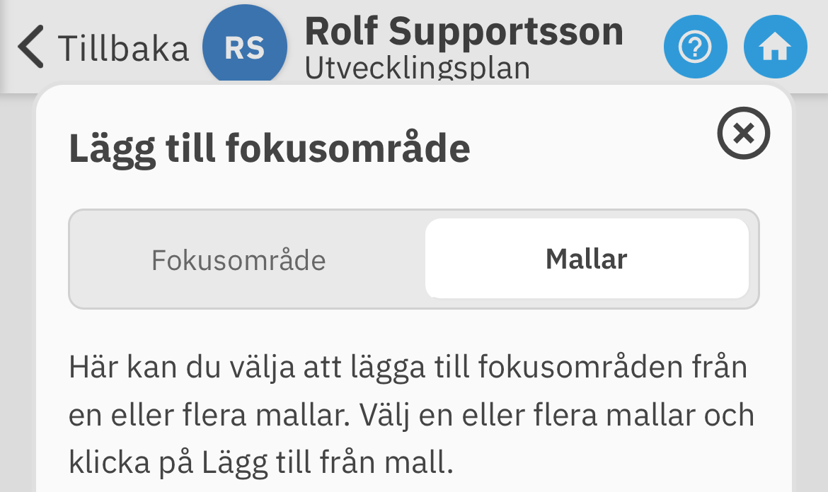 - Välj högst upp om du ska skapa ett ”Nytt fokusområde” för individen eller klicka på ”mallar”