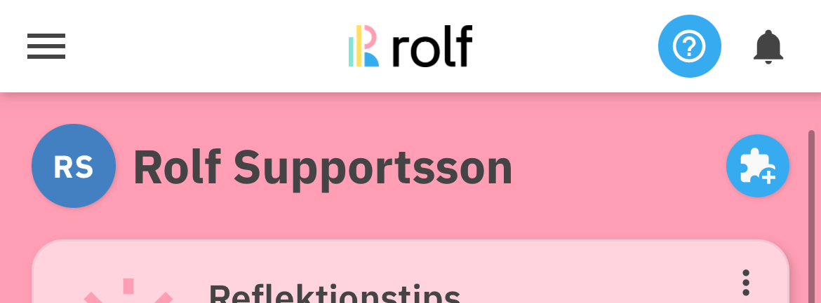 Hemskärmen består av anpassningsbara widgets. Som standard visas navigeringskort för de moduler användaren har tillgång till, men hemskärmen kan anpassas med fler widgets som visar specifik information, exempelvis reflektioner som du får läsa, taggmoln, reflektionstips etcetera.