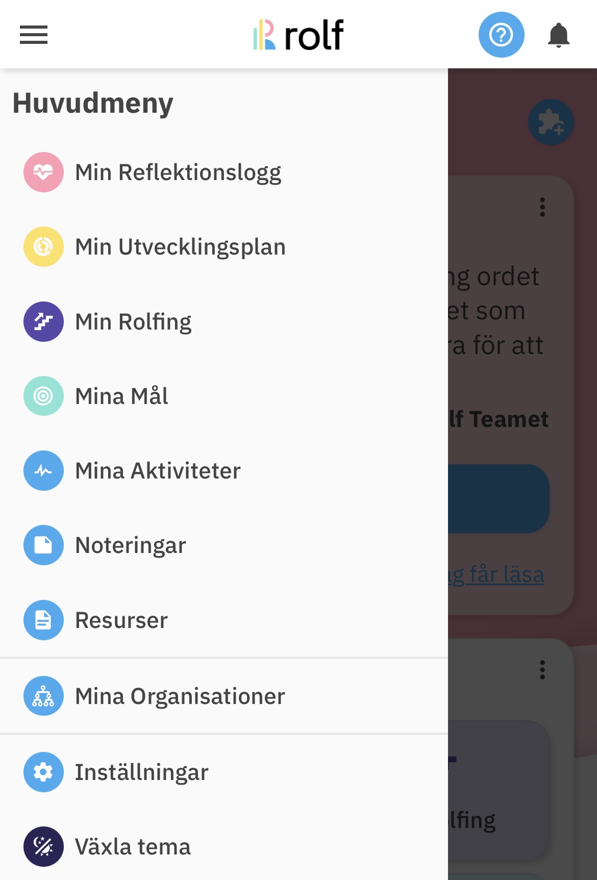 Klicka på ”Mina organisationer” i Huvudmenyn som du kommer åt via ”hamburgermenyn” i vänstra hörnet